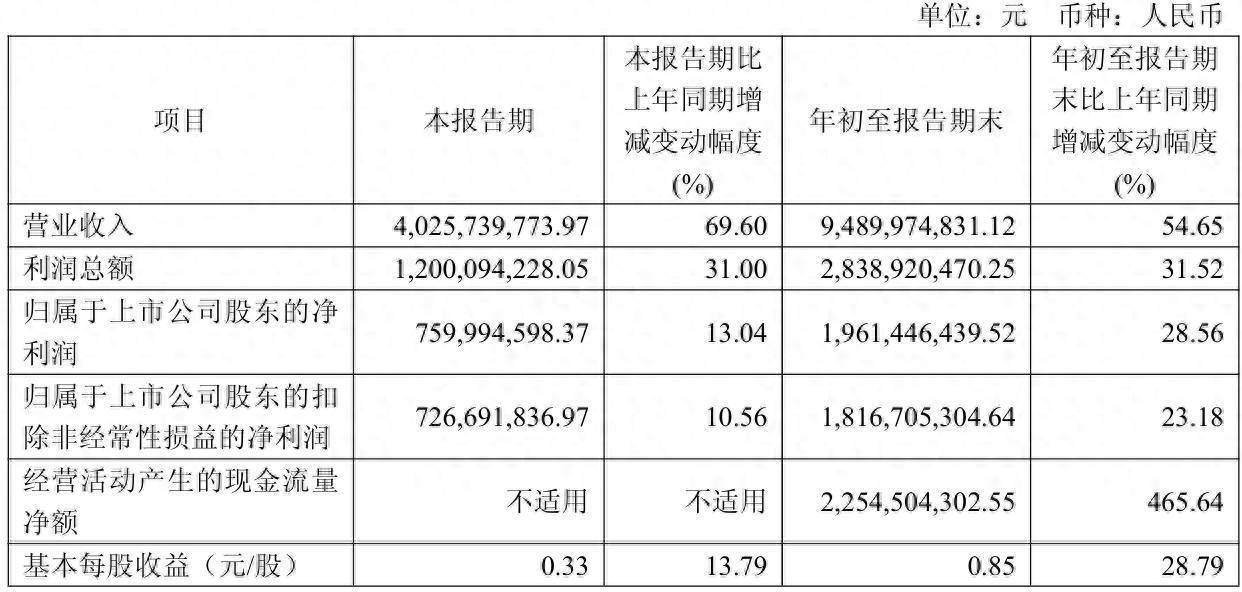 海光信息(688041.SH)发布第三季度报告,公司第三季度营业收入40.26亿元,同比增长69.6%,前三季度营业收入94.9亿元,同比增长54.65%;第三季度归属于上市公司股东的净利润7.6亿元,同比增长13.04%,前三季度净利润19.61亿元,同比增长28.56%。