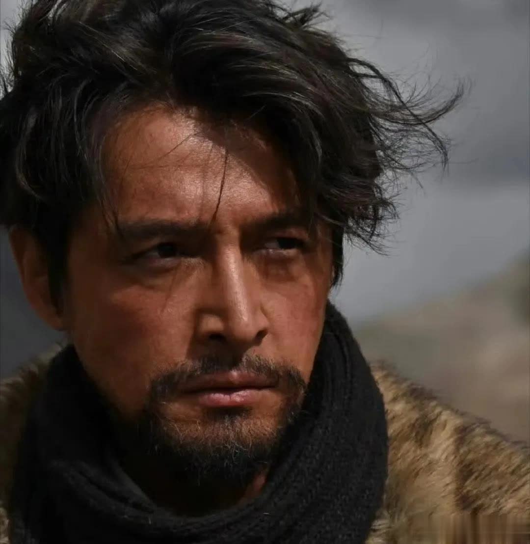 胡歌在这里也形象大变,从上海西装革履、风光的宝总,变为藏族糙汉,黝黑的皮肤,脸上有一圈高原红。