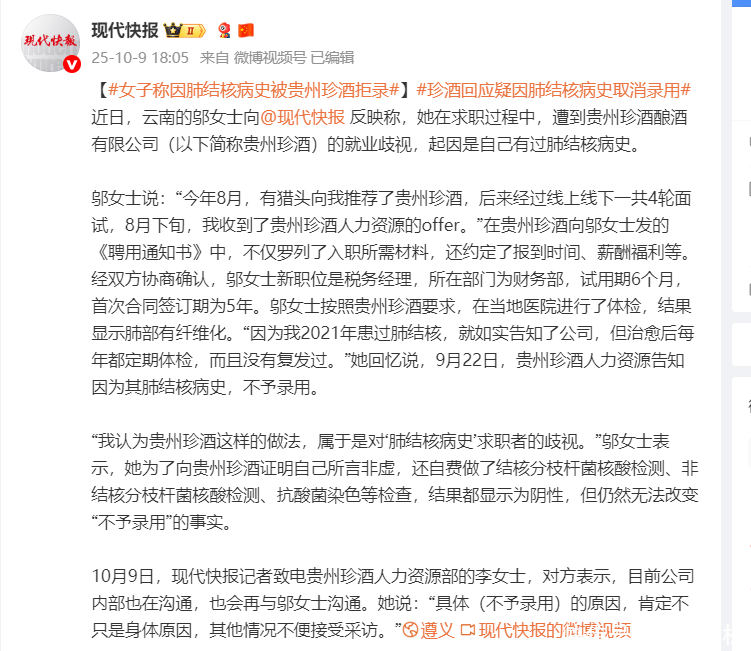 近日,多家媒体报道称,贵州珍酒陷“肺结核病史拒录”事件。业内普遍认为,该事件暴露了企业在ESG治理上的致命短板。