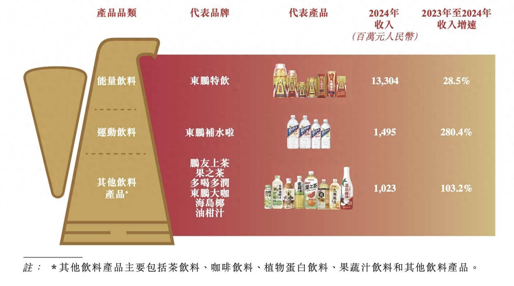 从市场地位来看,根据弗若斯特沙利文报告,东鹏饮料自2021年起连续四年在中国能量饮料行业保持销量第一的领先地位。以2024年销量计,其市场份额为40.1%。自2022年至2024年,公司也是中国前五大能量饮料企业中销量增速最快的企业,年复合增长率达28.5%。